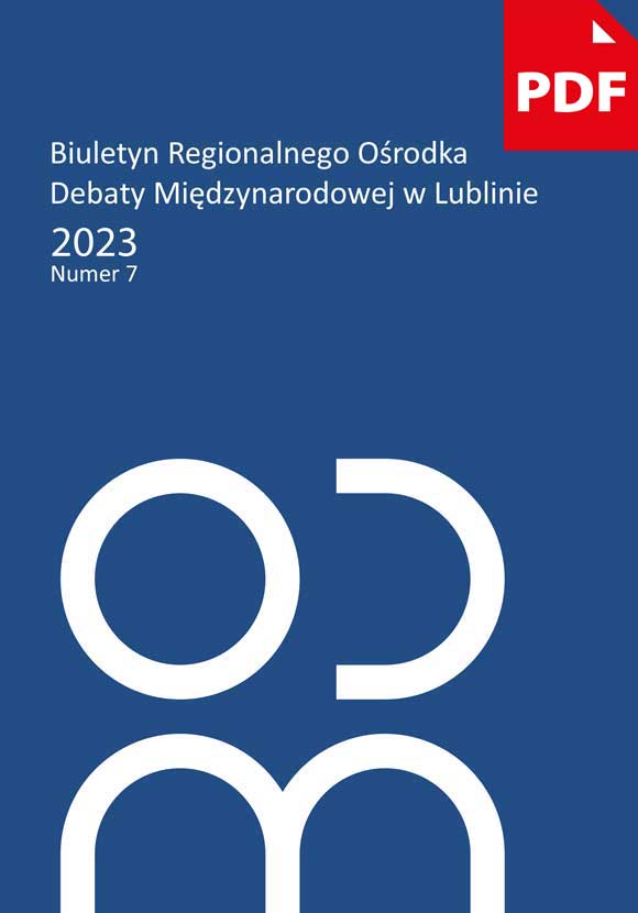 Siódmy numer Biuletynu Regionalnego Ośrodka Debaty Międzynarodowej w Lublinie. Zawiera szereg artykułów naukowych i analitycznych oraz przedstawia zarys działalności Ośrodka w roku 2023.